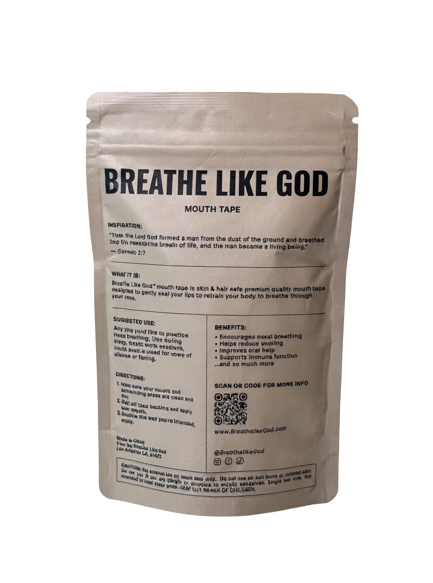 THE GOAL IS ALWAYS TO ENCOURAGE NASAL BREATHING-- BREATHE LIKE GOD MOUTH TAPE HELPS BY GENTLY SEALING THE LIPS WITH OUR SKIN AND HAIR SAFE MOUTH TAPE.